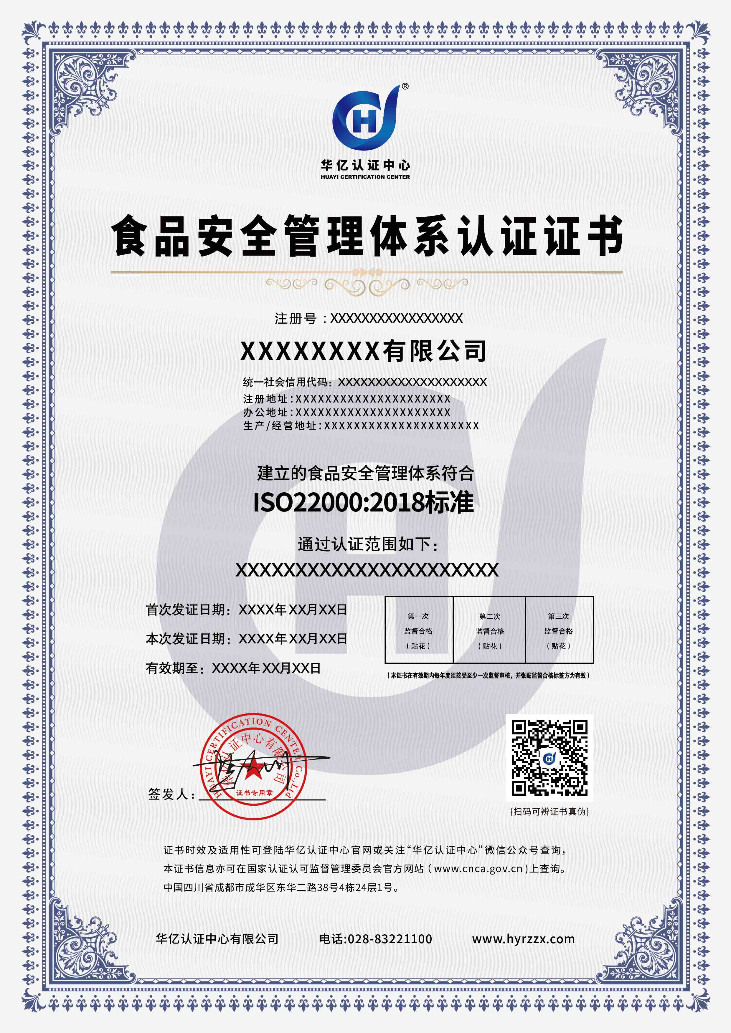 食品安全管理体系认证证书