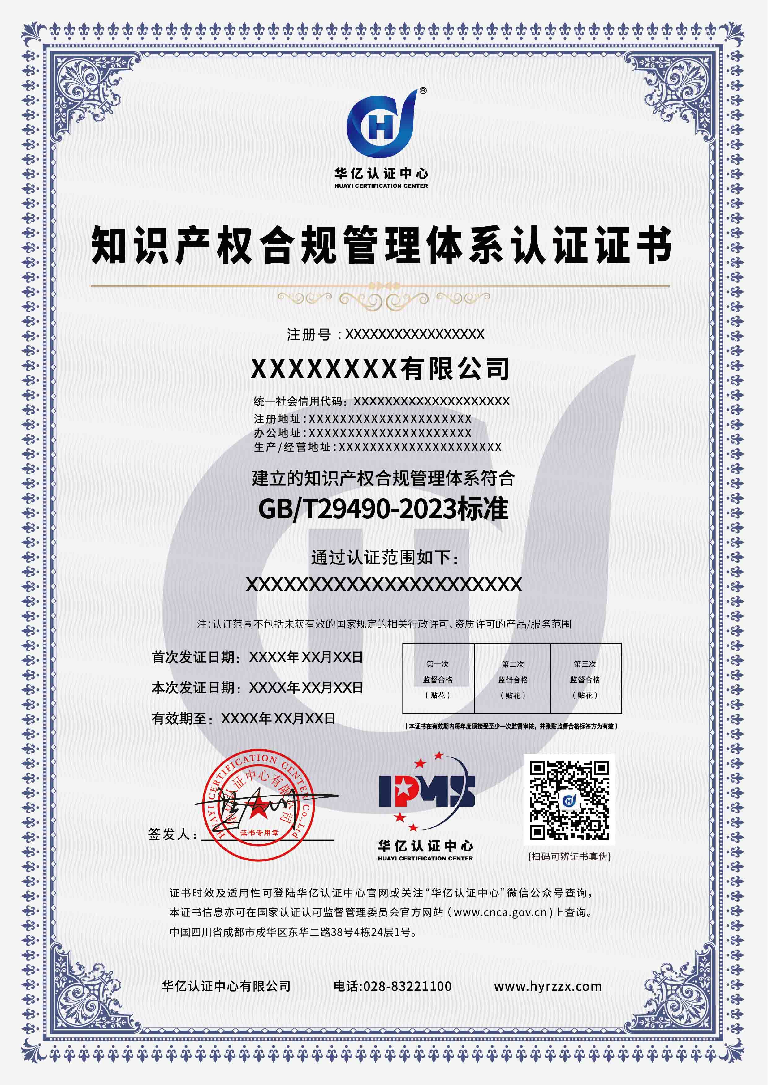 知识产权合规管理体系认证证书