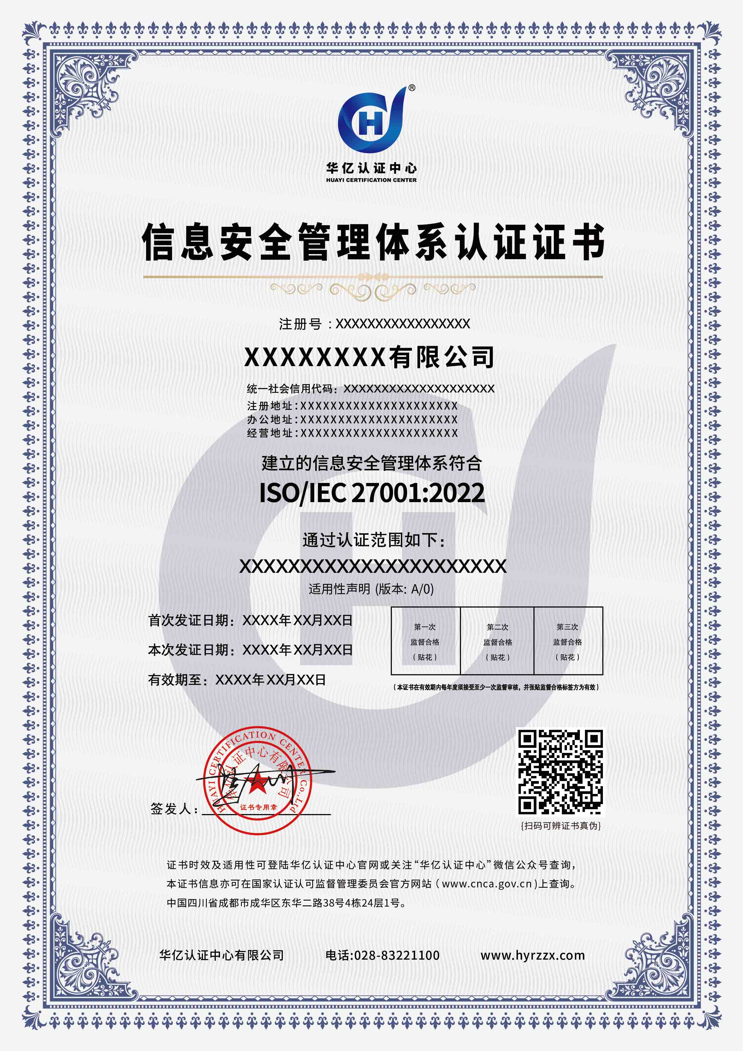 信息安全管理体系证书